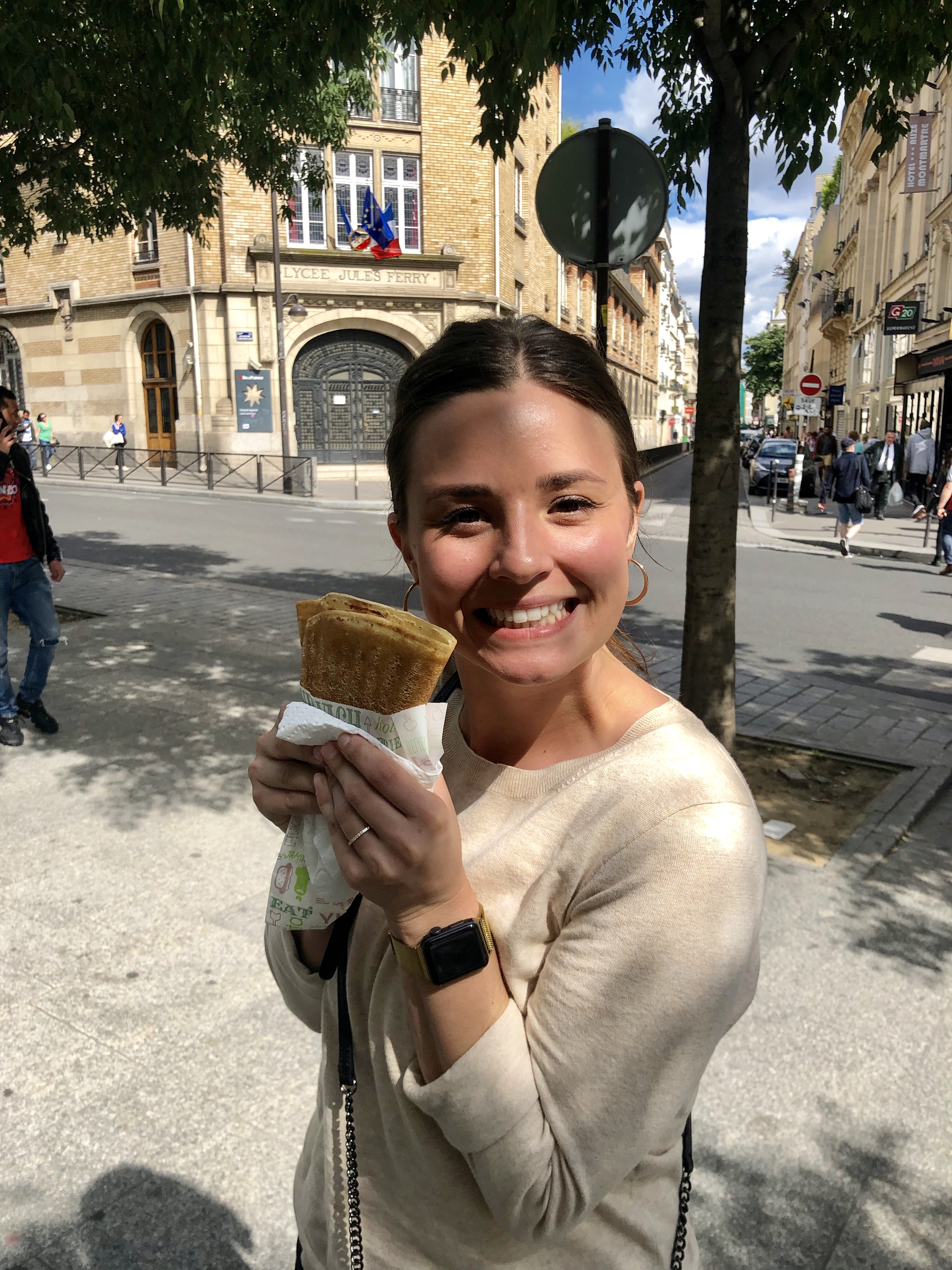Besides losing 70 euros in a completely avoidable fashion, our first day was pretty amazing. We kicked it off in prime tourist fashion by going to the Eiffel Tower! We had heard that it was really underwhelming, but honestly I thought it was huge. We got some great pictures and then went down to the Seine to buy a delicious crepe. We then went to the Arc de Triomphe and had a nice stroll down Champs-Élysées. What a gorgeous street! We kept marveling at how beautiful the city was. We just weren’t used to such old city architecture where every single building is beautiful. Every street you look down is like a postcard in Paris.