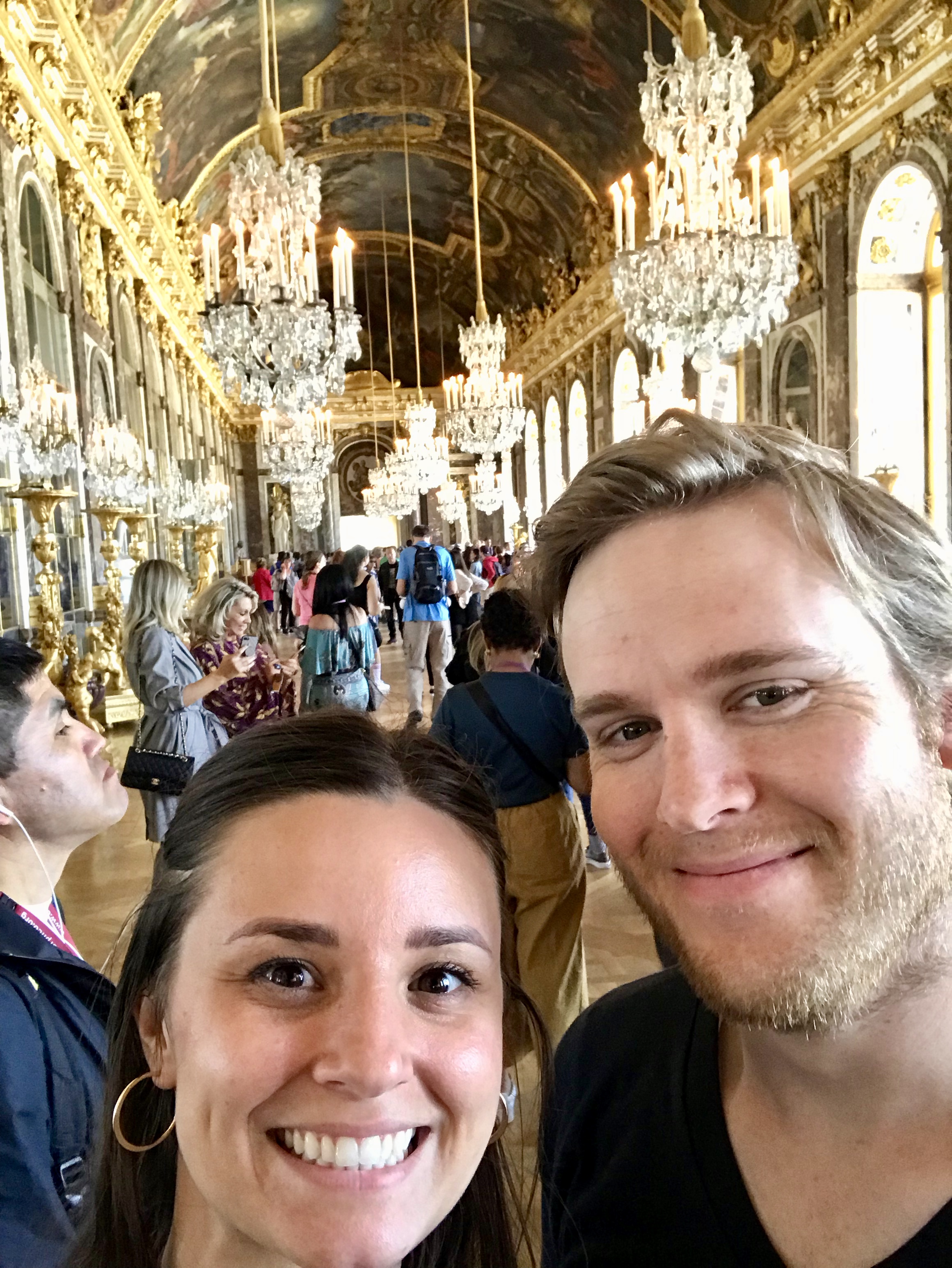 On our next day out, we took a trip to Versailles. Once you learn the ropes, the public transportation system in Paris is wonderful. It is so easy to get places! A few short subway rides and, voilà! You’re at Versailles! It’s kind of cool that the grand palace is so close to the city. It was very opulent, with gold gates and gold trimming on the buildings. Truthfully, the gardens were my personal favorite. The inside of the palace was still very impressive. There were paintings everywhere, everything was gilded, and there was so much history!
