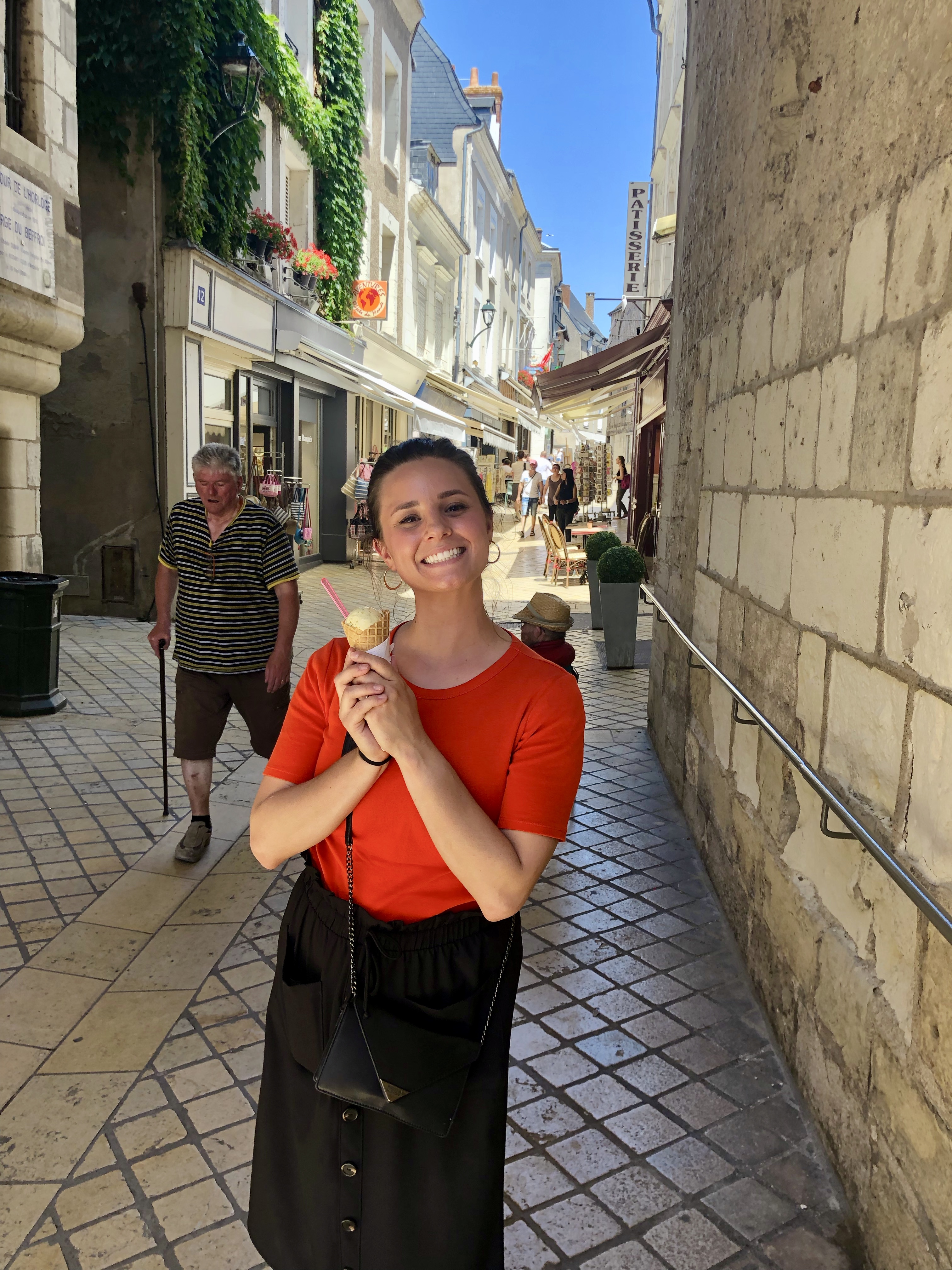 The third and final château we visited was Château d’Amboise. This was on our last day in the Loire Valley, and it was a scorcher! We walked around the little village surrounding the castle, and it was adorable to say the least. There was a very medieval feel to it. There were the classic picturesque cobblestone streets, and some of the cutest little shops and restaurants. (By the way, how are there so many restaurants in France?? How do they all stay in business??) We moseyed on up to the château, with pistachio ice cream in hand.