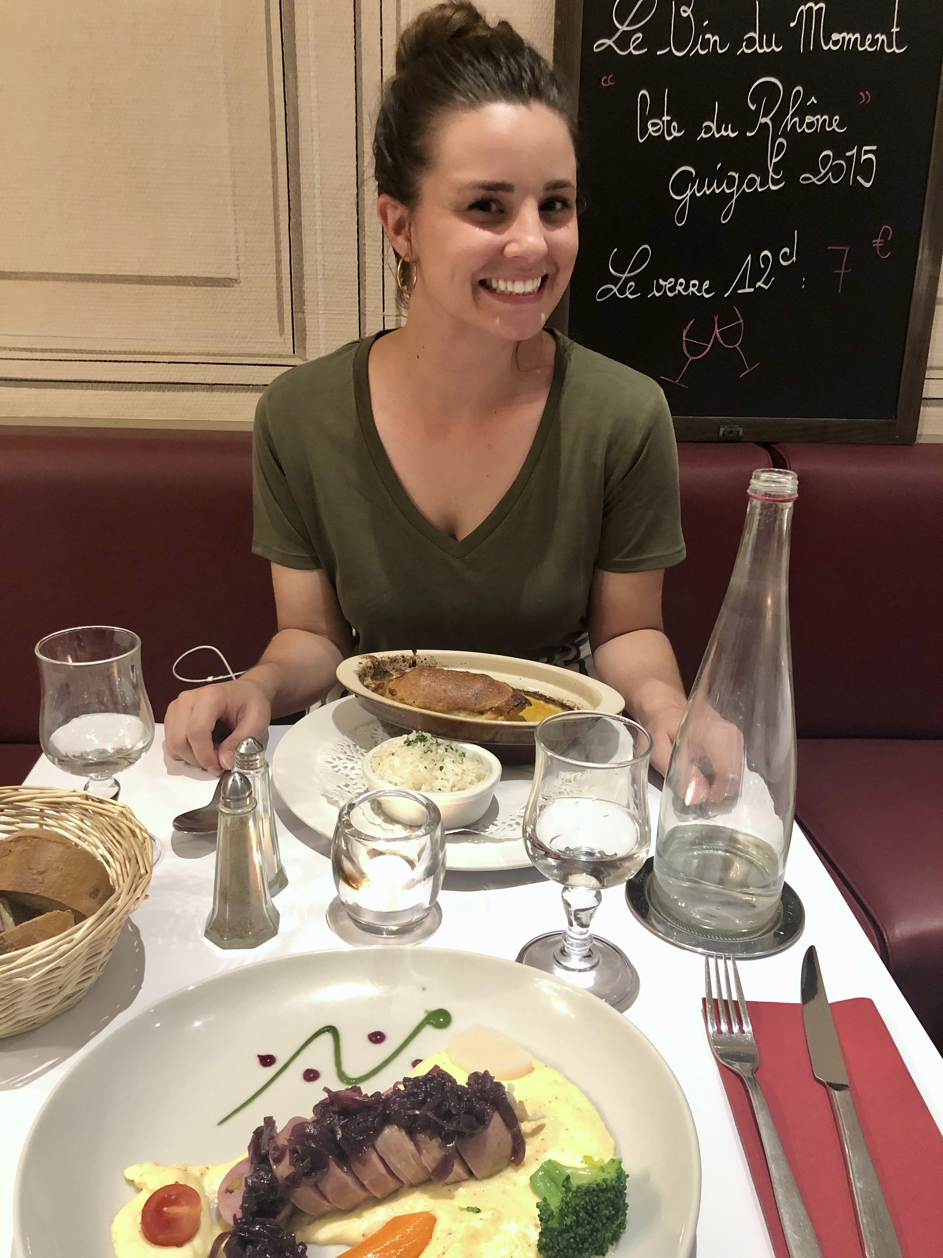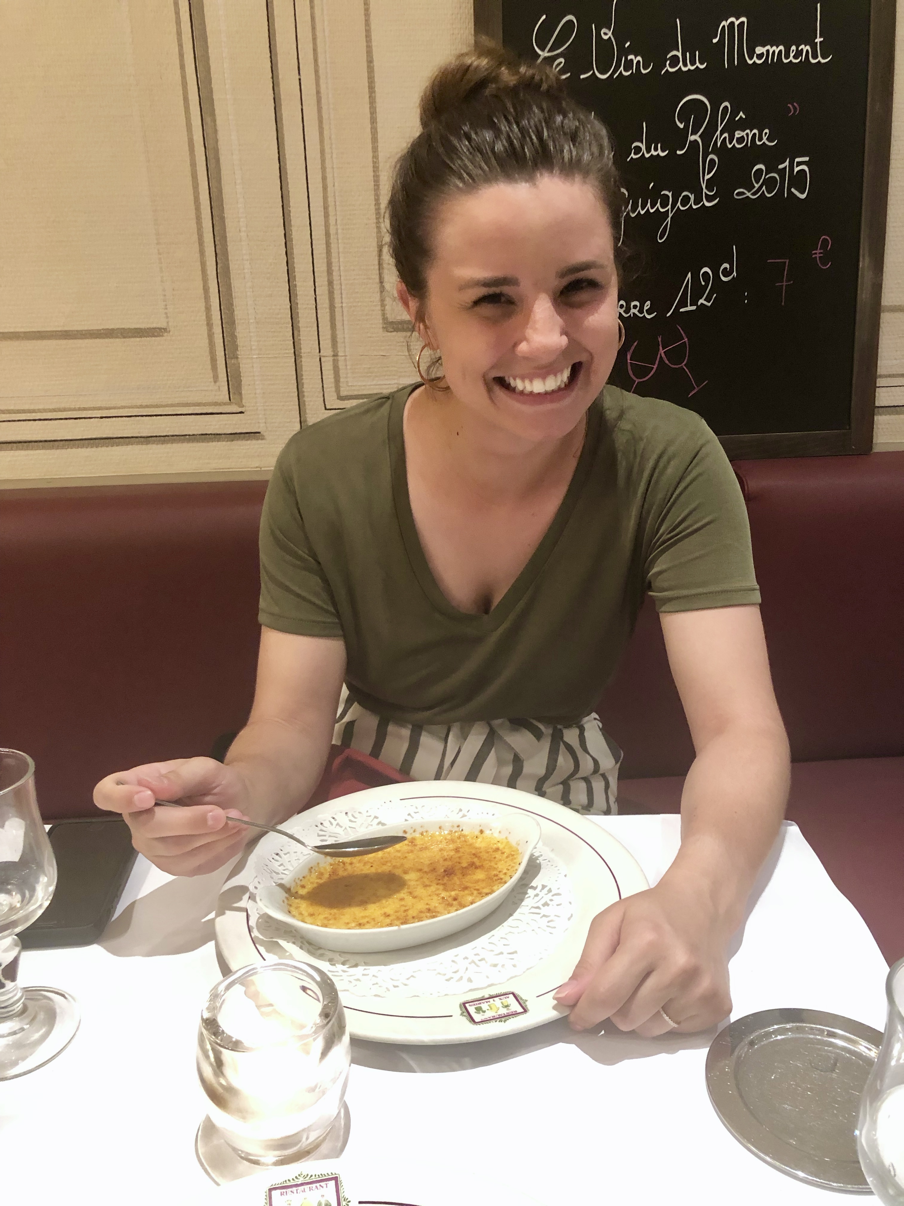 And then it was time to celebrate my birthday! My birthday was technically the day we arrived in Lyon, meaning I spent my first few hours being 26 on a stinky uncomfortable night bus. But we decided that I was cool enough to get two full days of celebration. Lyon is the food capital of France. We did our research and found one of the most classic restaurants in Lyon. It was in a really cute part of town with street performers and the cutest little cobblestone streets. I got a lobster bisque with some sort of fish bread thing and rice, and Marcus got a veal sausage thing. Both were incredibly delicious and we finished it off with two huge crème brûlées that were very satisfying ends to our meal.