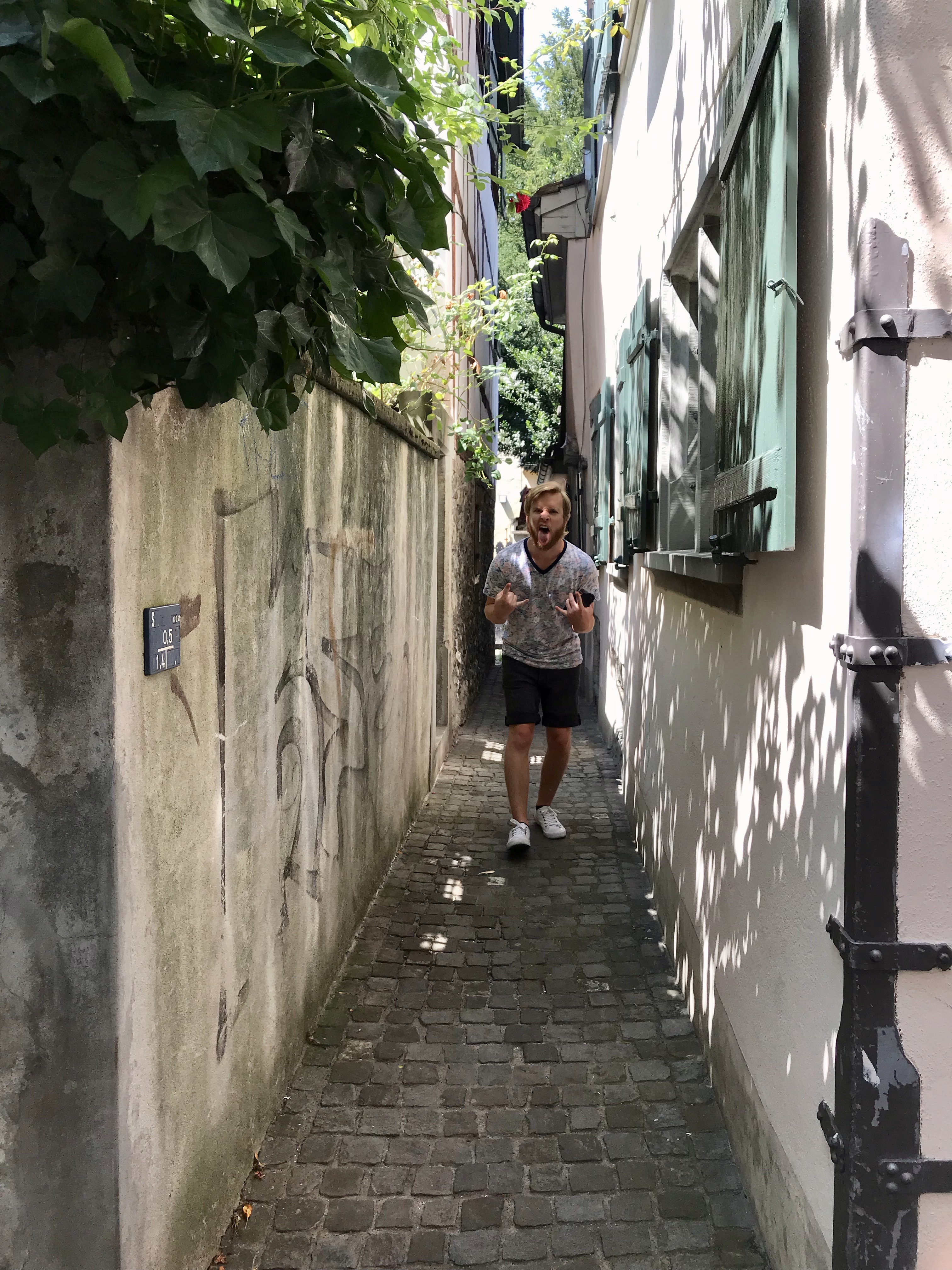 We spent another wonderful day just exploring the city. Zurich has a great Old Town area with lots of shopping and restaurants. We had a great time window shopping and sightseeing. The buildings here are gorgeous, in every pastel shade and color. Stacked next to each other it looked like we were constantly walking by a giant painting. The alleys are gorgeous; it was difficult not to take a picture at every turn. There are also tons of statues and fountains everywhere. It felt like Disneyland!