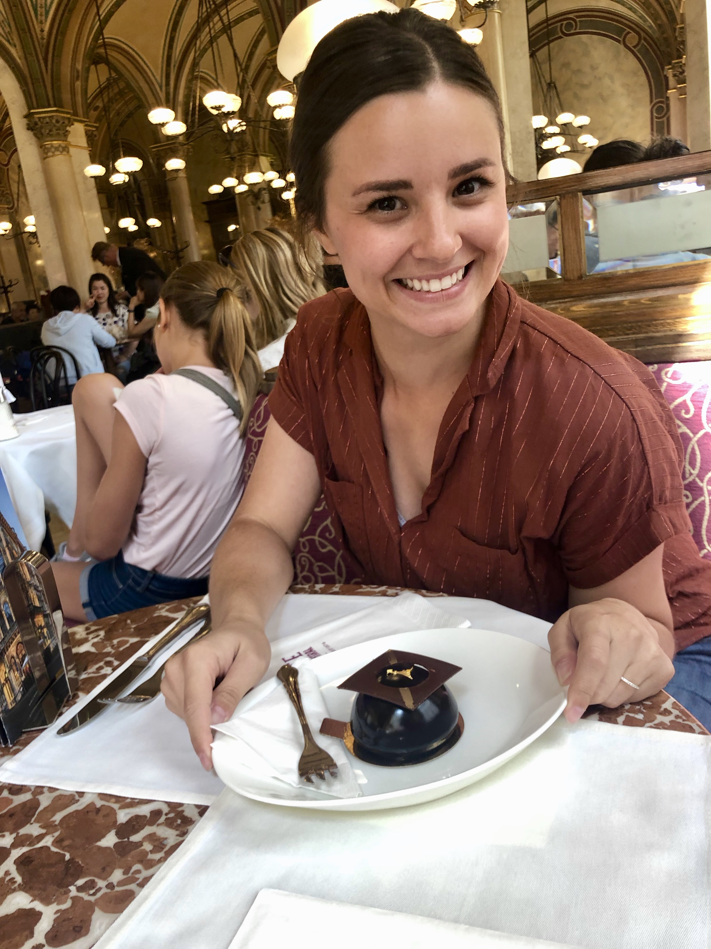 Our first day out we were struck by how immaculate Vienna is. The buildings are all a cream or ivory color, and it gives the city such a light and airy feeling! We got a wonderful Viennese breakfast at Cafe Central, a former bank-turned-cafe where famous minds such as Sigmund Freud would frequent back in the day. It was a gorgeous building and I had the most incredibly delicious chocolate pastry ever. It had actual gold flakes on it, I felt so luxurious.