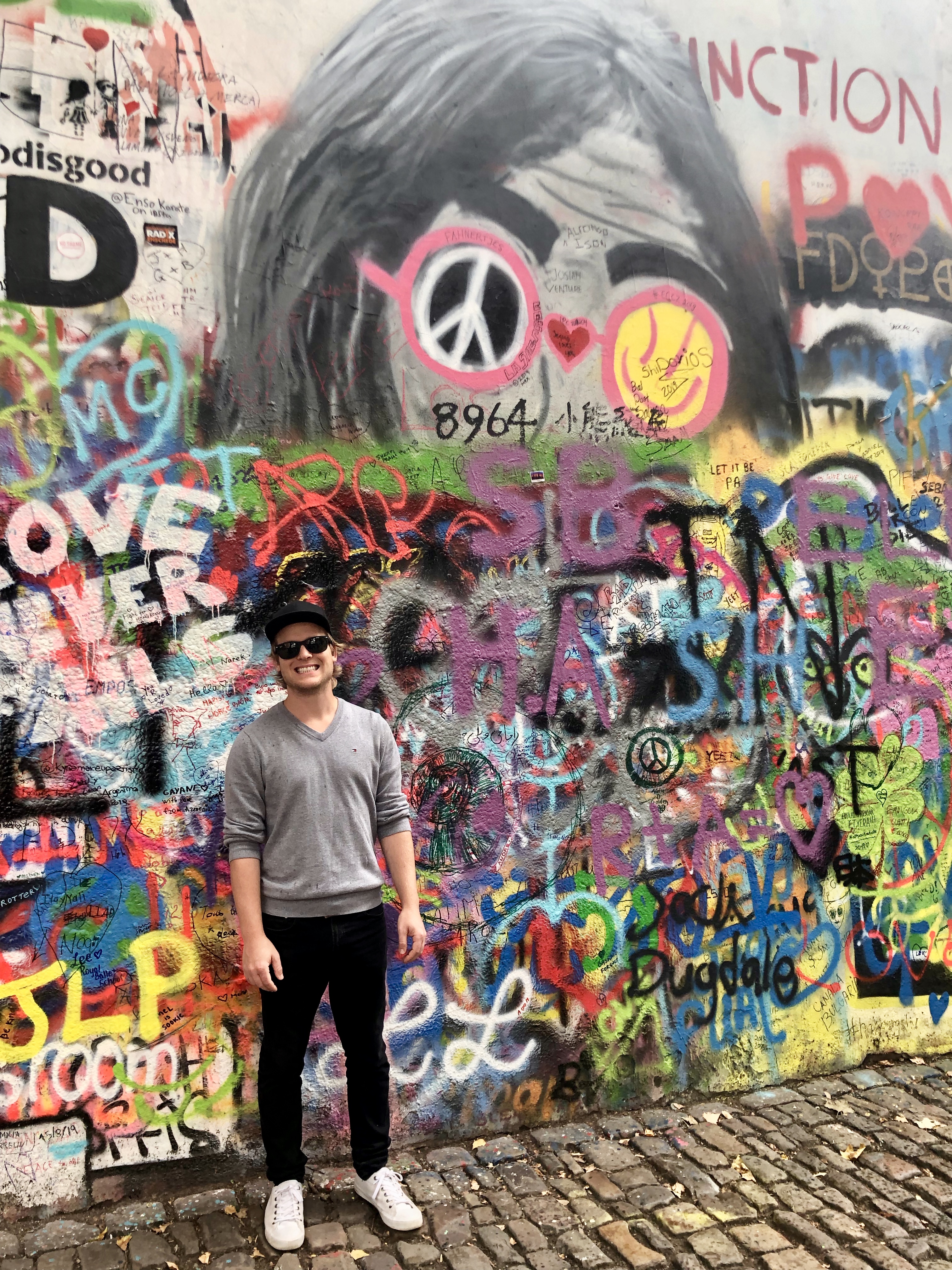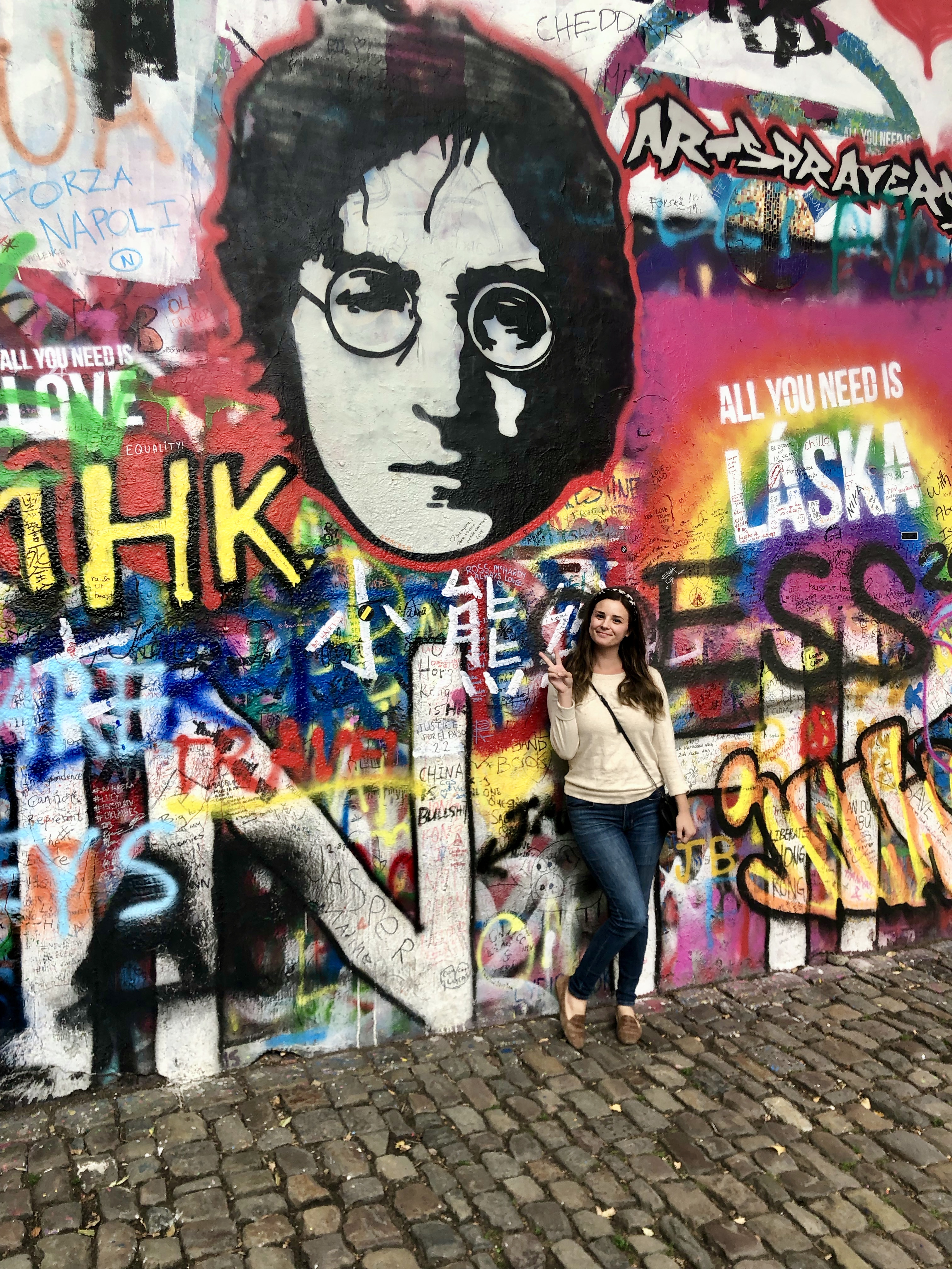 After eating, we went to a different sort of monument in Prague, the Lennon Wall. After the assassination of John Lennon, an unknown artist painted a picture of Lennon with some song lyrics. The wall was soon filled with paintings of him. As communism swept through Czechia, the wall was a source of conflict between young Czechs and the government. People would post their issues with the government on the wall and eventually there was an altercation between police and students nearby. The wall is continually being added to and original artwork is a few layers deep.