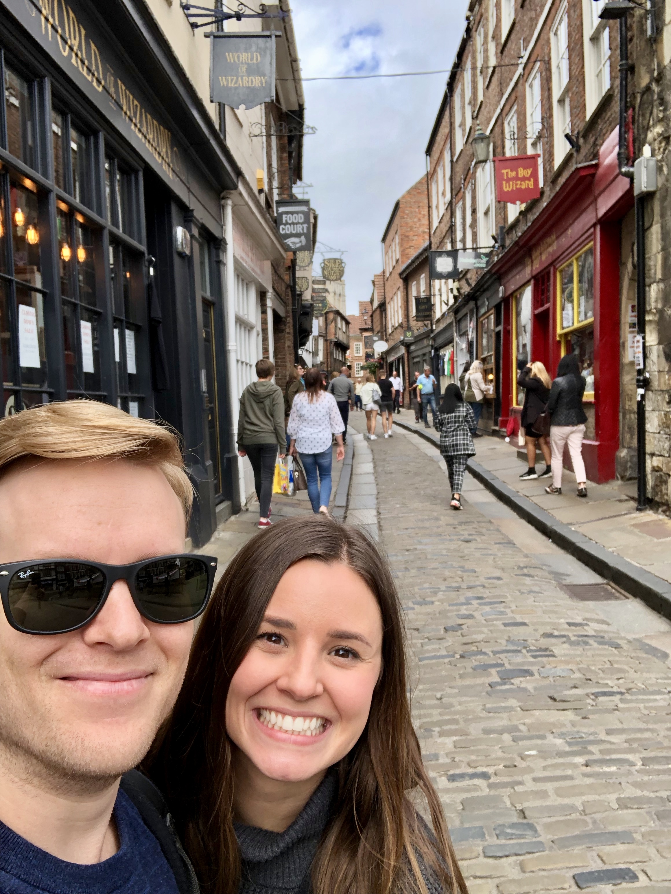 After strolling along the wall, we set off for a street called the Shambles, which was once an open-air meat market. The word “shambles” comes from a word that the Anglo-Saxons used for shelves that display meat. Today, however, it is a street lined with fun little shops. Interestingly enough, most of these shops are Harry Potter themed! Being the Potter-heads that we are, of course we went in every single one.