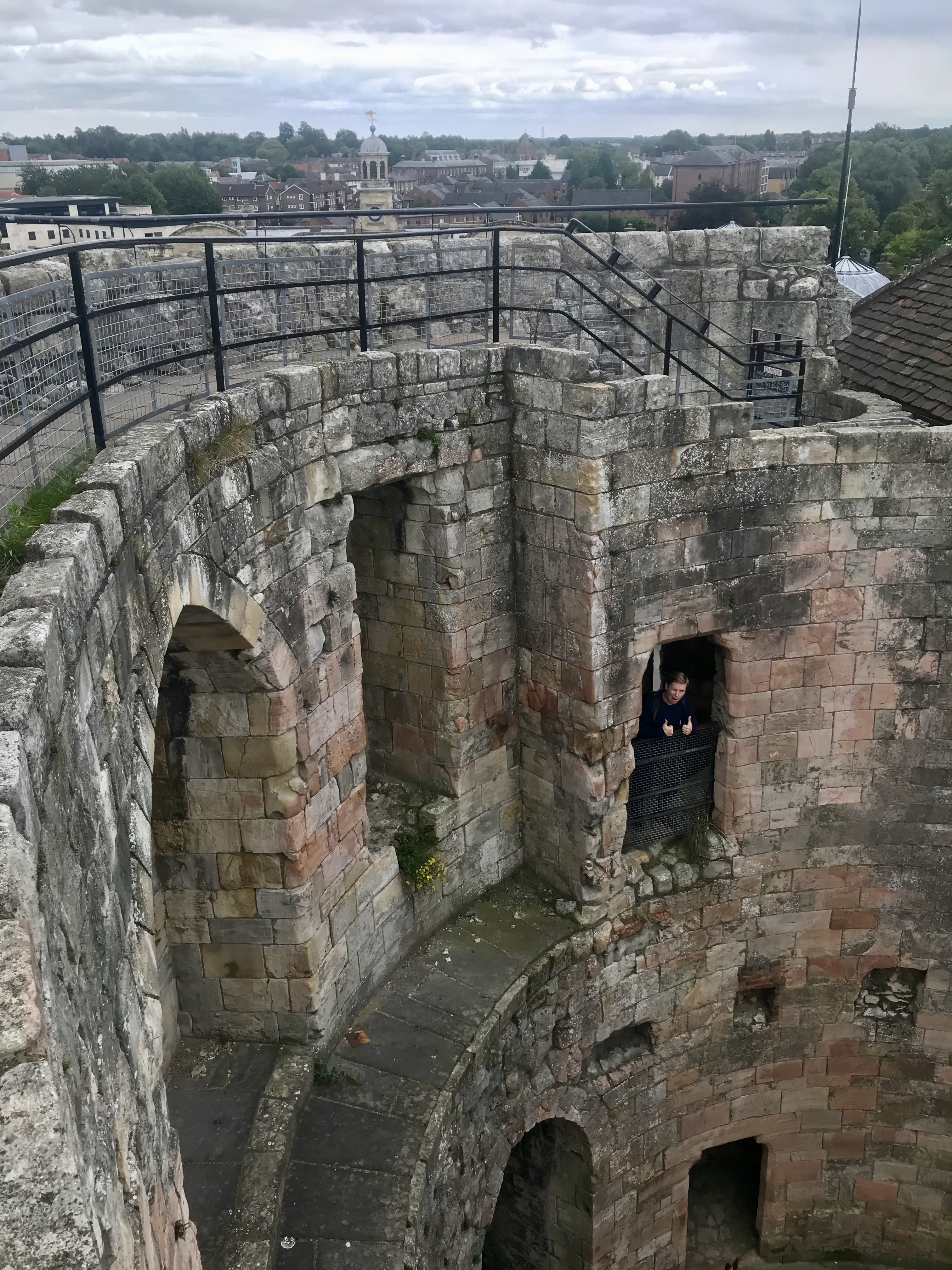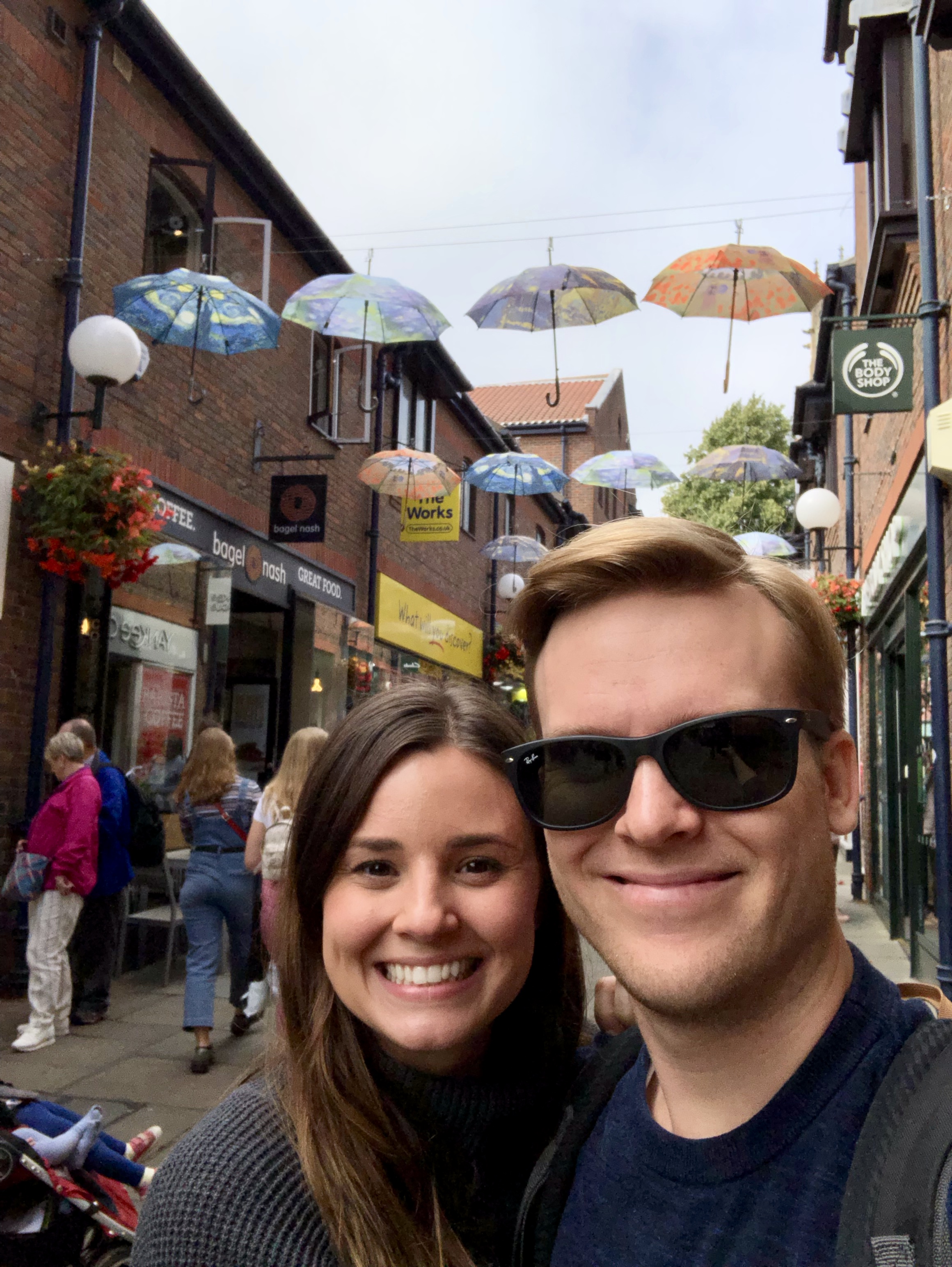 We continued our tour through the city, and it was just beautiful. There are a few small rivers running through the town, so there are lots of cute little bridges and waterways. We walked under Van Gogh umbrellas, watched some street performers, and soaked in the view of the medieval villages. We made our way over to Clifford’s Tower, one of the more preserved pieces of the York Castle. It has an interesting history, and eventually the interior was destroyed in an explosion. Today it stands on a very green hill providing wonderful panoramic views of the city.