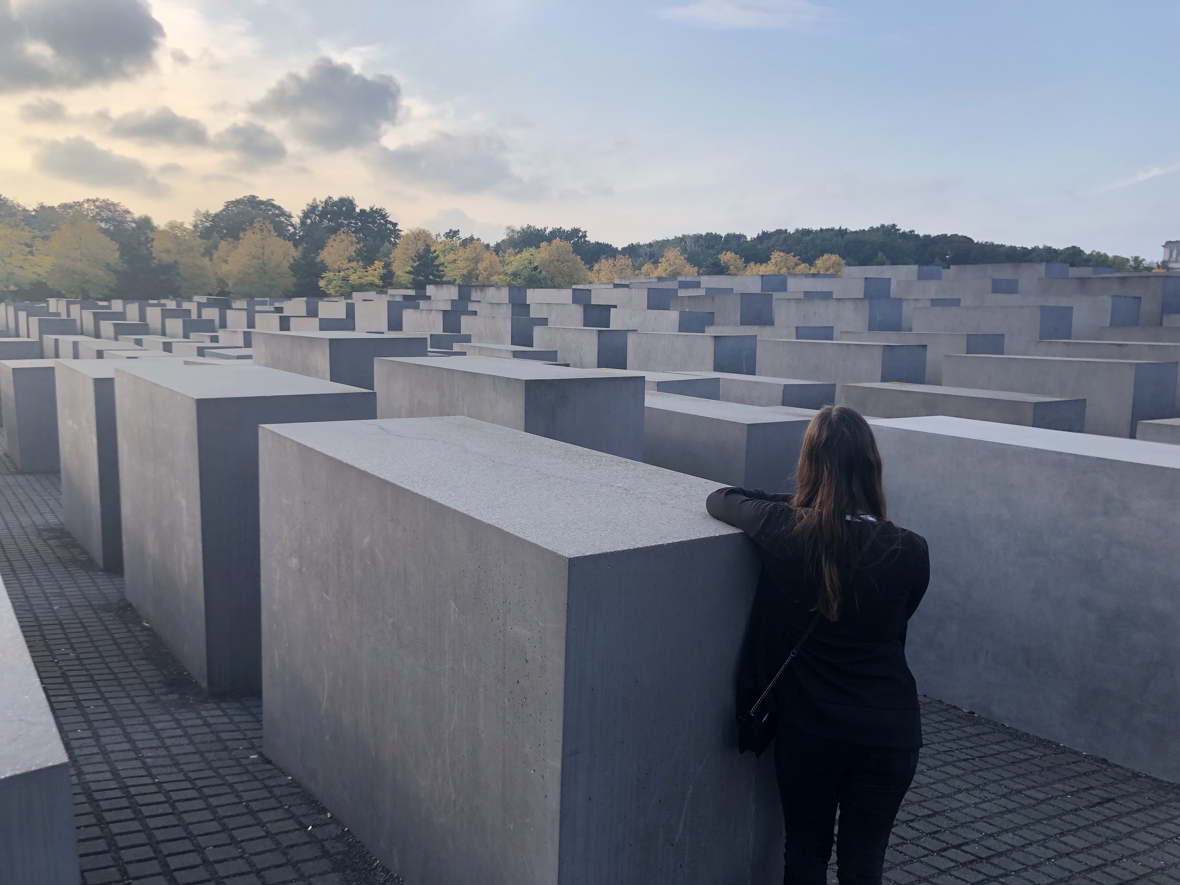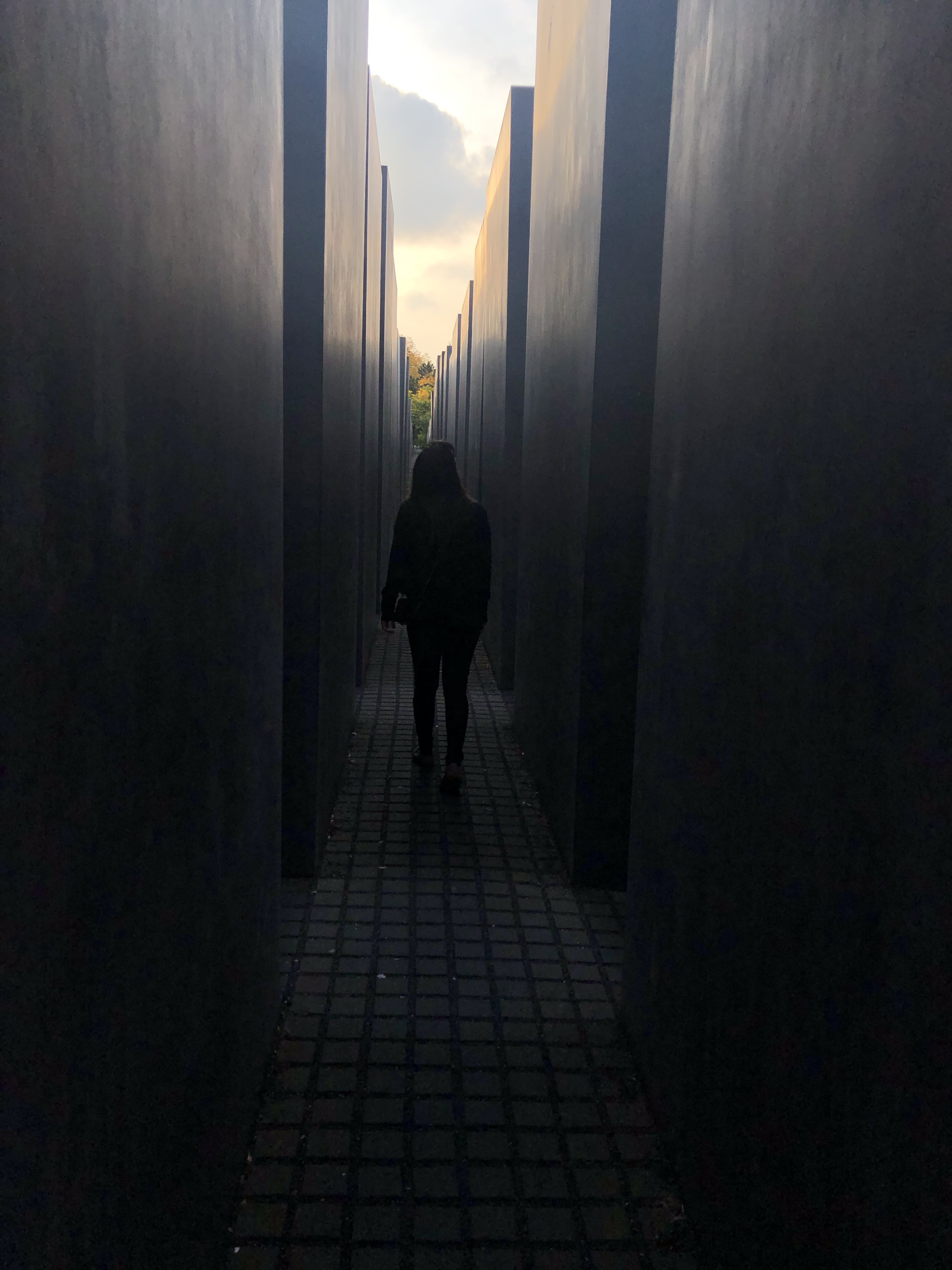 After seeing the wall, we went over to the center of town. We started with the Memorial to the Murdered Jews of Europe. It was a fascinating memorial, there are thousands of concrete slabs of different heights in a grid. The site was hauntingly beautiful, and we felt like we were in a dystopian novel. Each slab resembled a coffin, and the different heights seemed to portray the different ages of the victims. Germany has such a troubled history, and seeing the way they now represent it really allowed us to reflect.