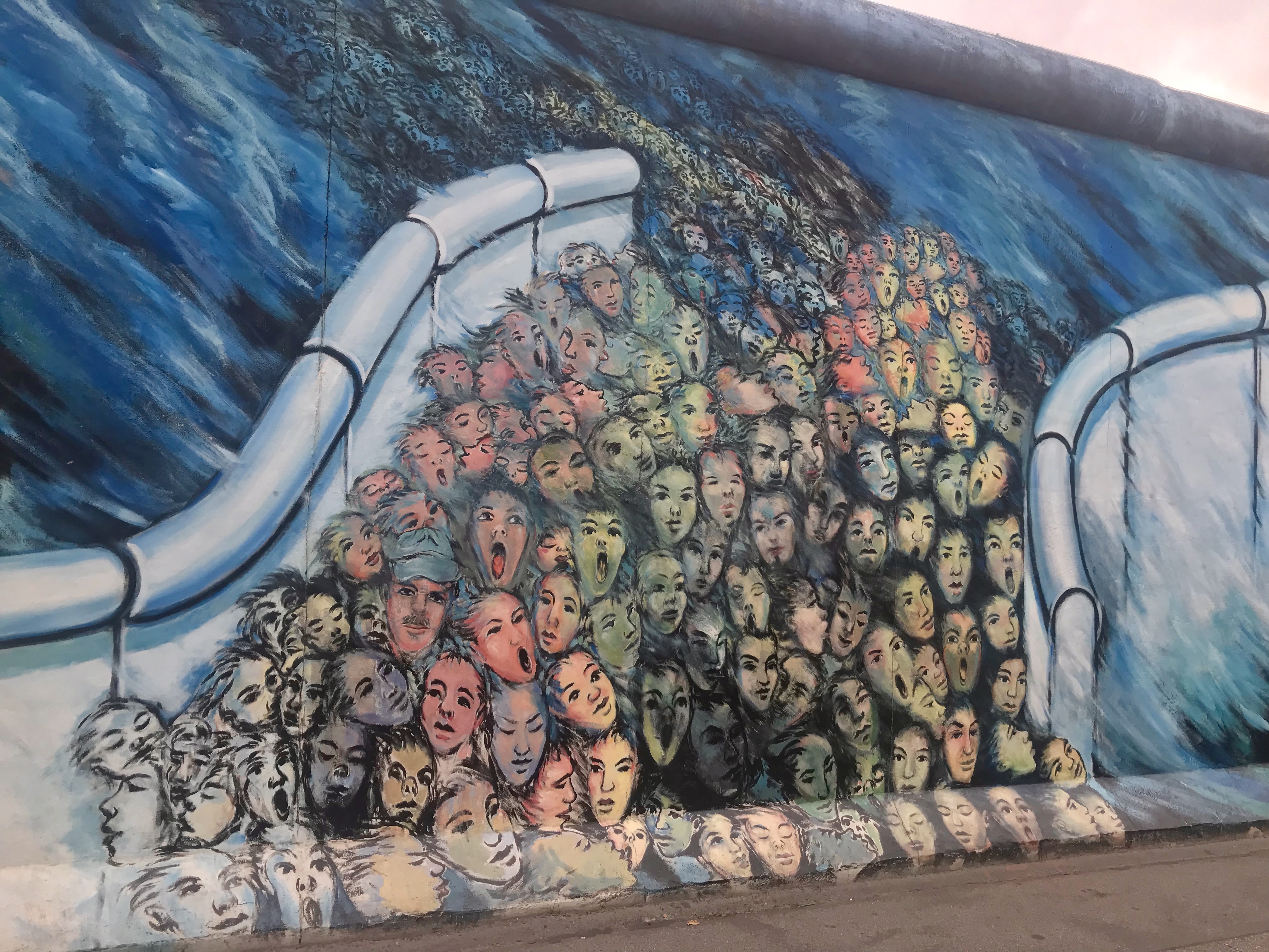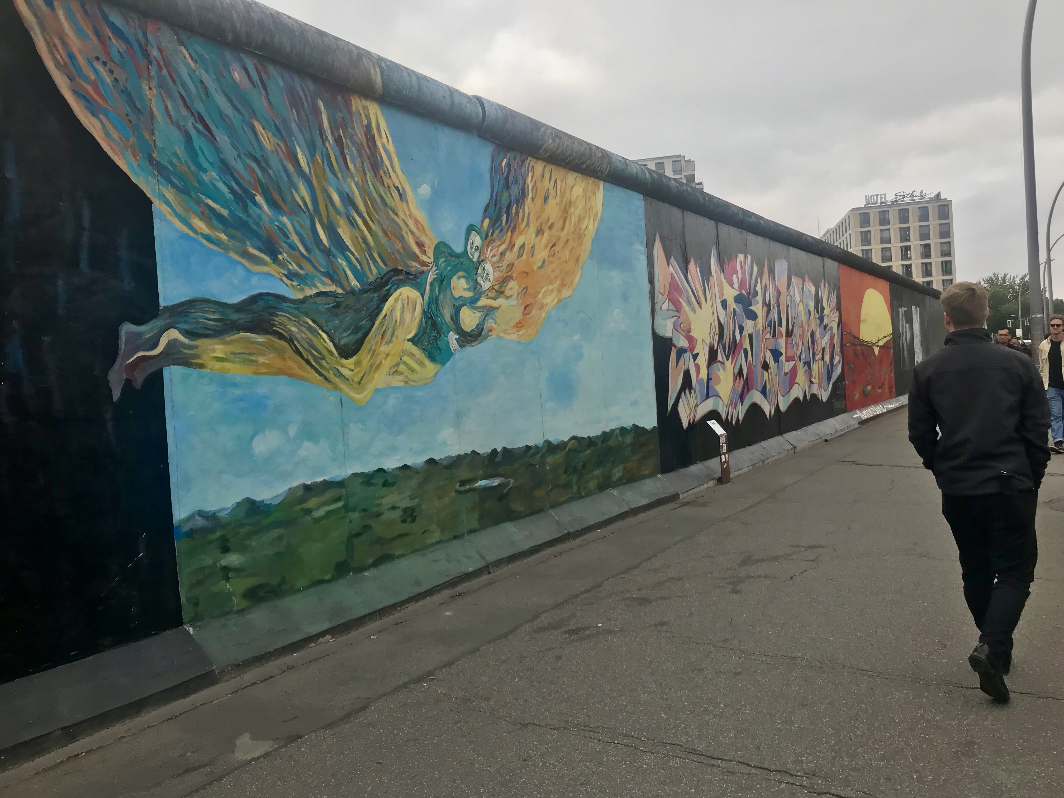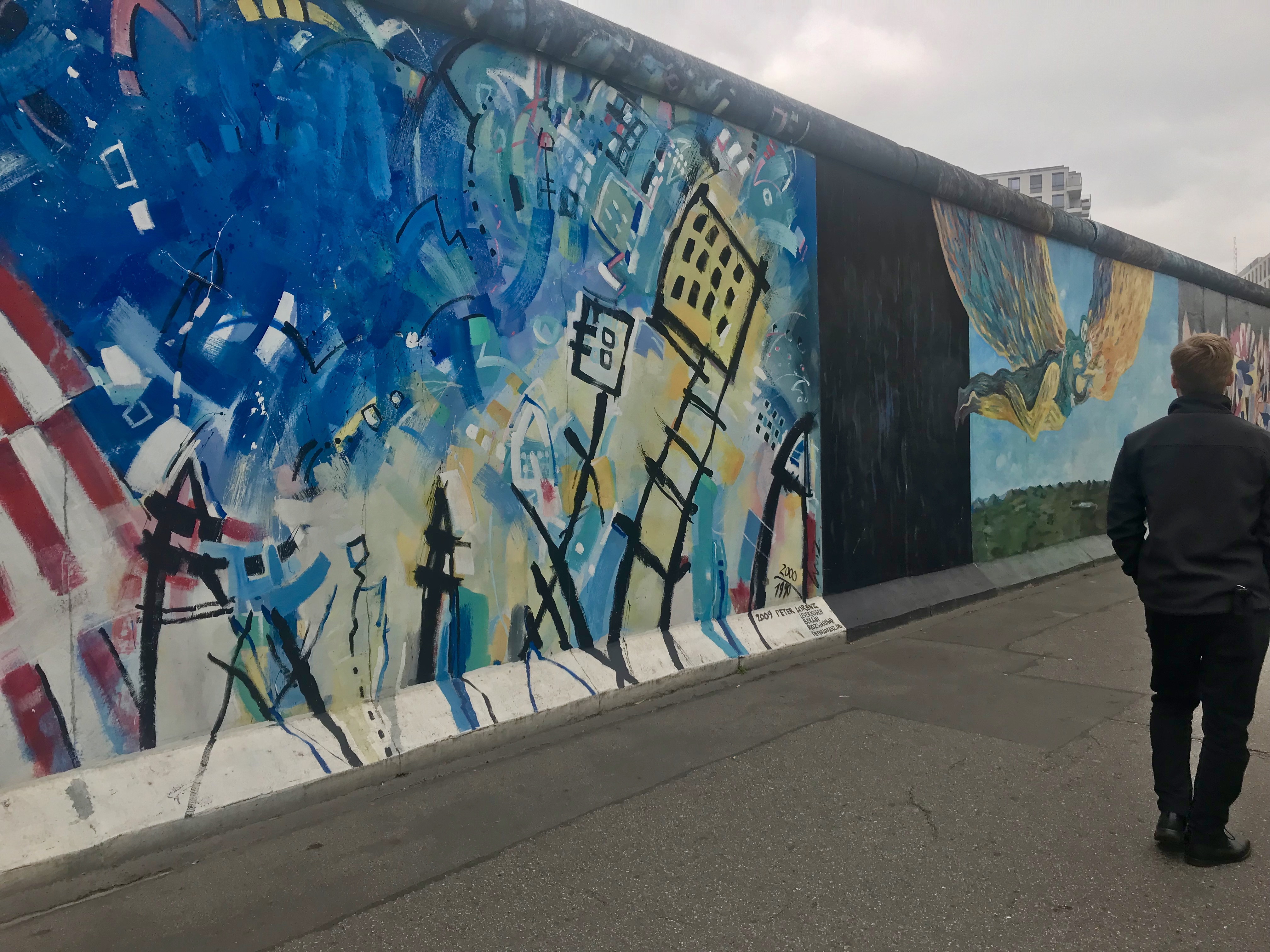 Our first day out started with visiting what’s left of the Berlin Wall. We visited the East Side Gallery, which has hundreds of murals on the 13-foot-tall wall that was painted in 1990. Berlin is covered in street art, practically every building is covered in a scene of animals, political cartoons, or landscapes. The art at the East Side Gallery, however, is special because it was a commentary on the divide between the two sides of Berlin, and Germany as a whole. There are murals representative of liberty, freedom of speech, and the separation of families. We took an hour or so to take in the art and the meaning of that wall.