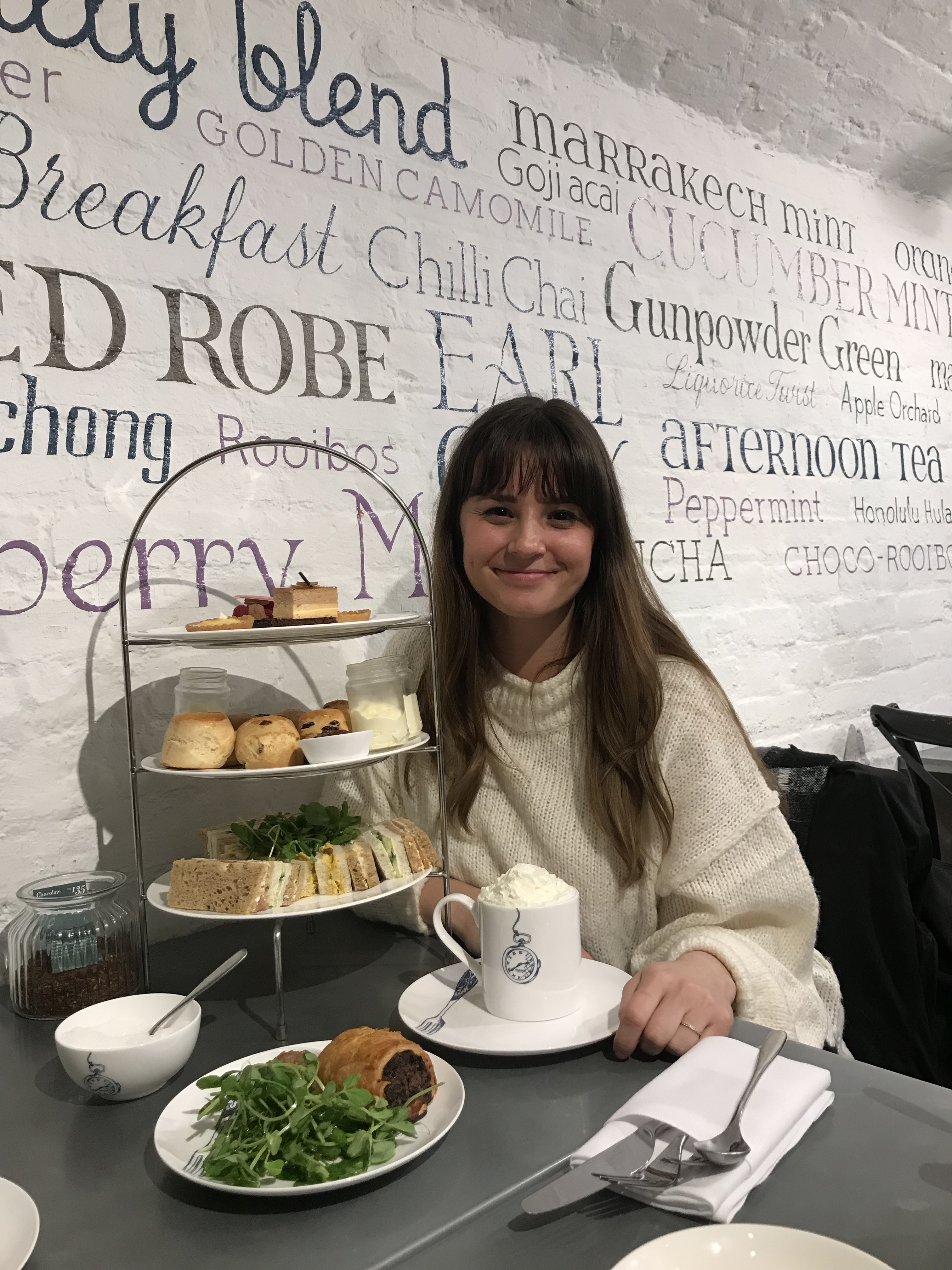 After a wonderful day, we met my sister at Whittard of Chelsea in Covent Garden for afternoon tea, which we substituted for dinner. It was delicious! We had some delicious hot cocoa, finger sandwiches, scones with clotted cream, and pastries. I couldn’t believe that I had never tried clotted cream! It was a great girls night and I’m sure we’ll get high tea together again someday.