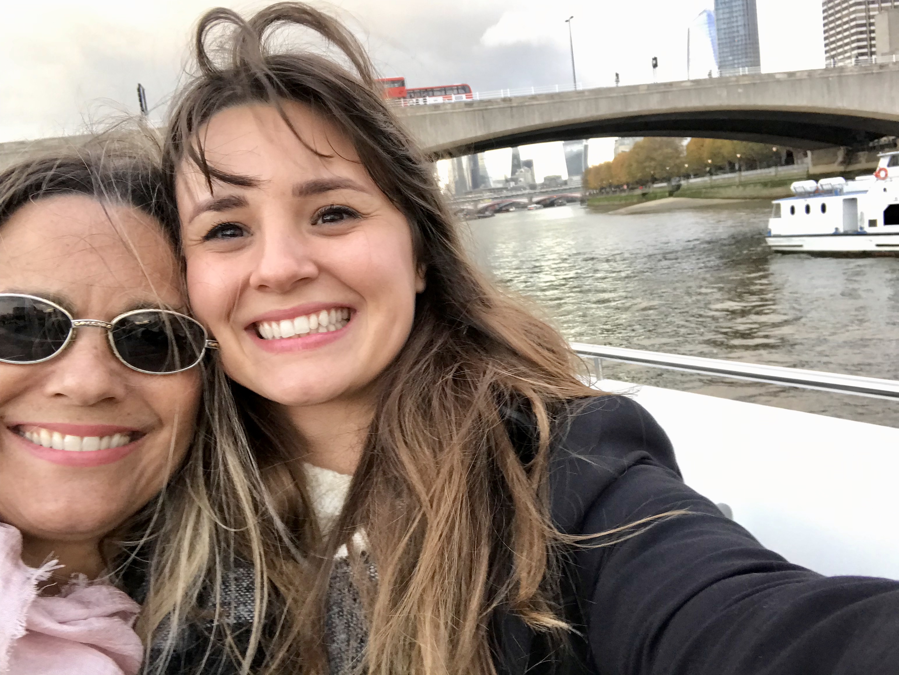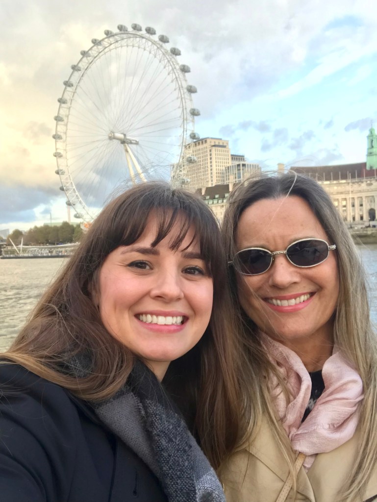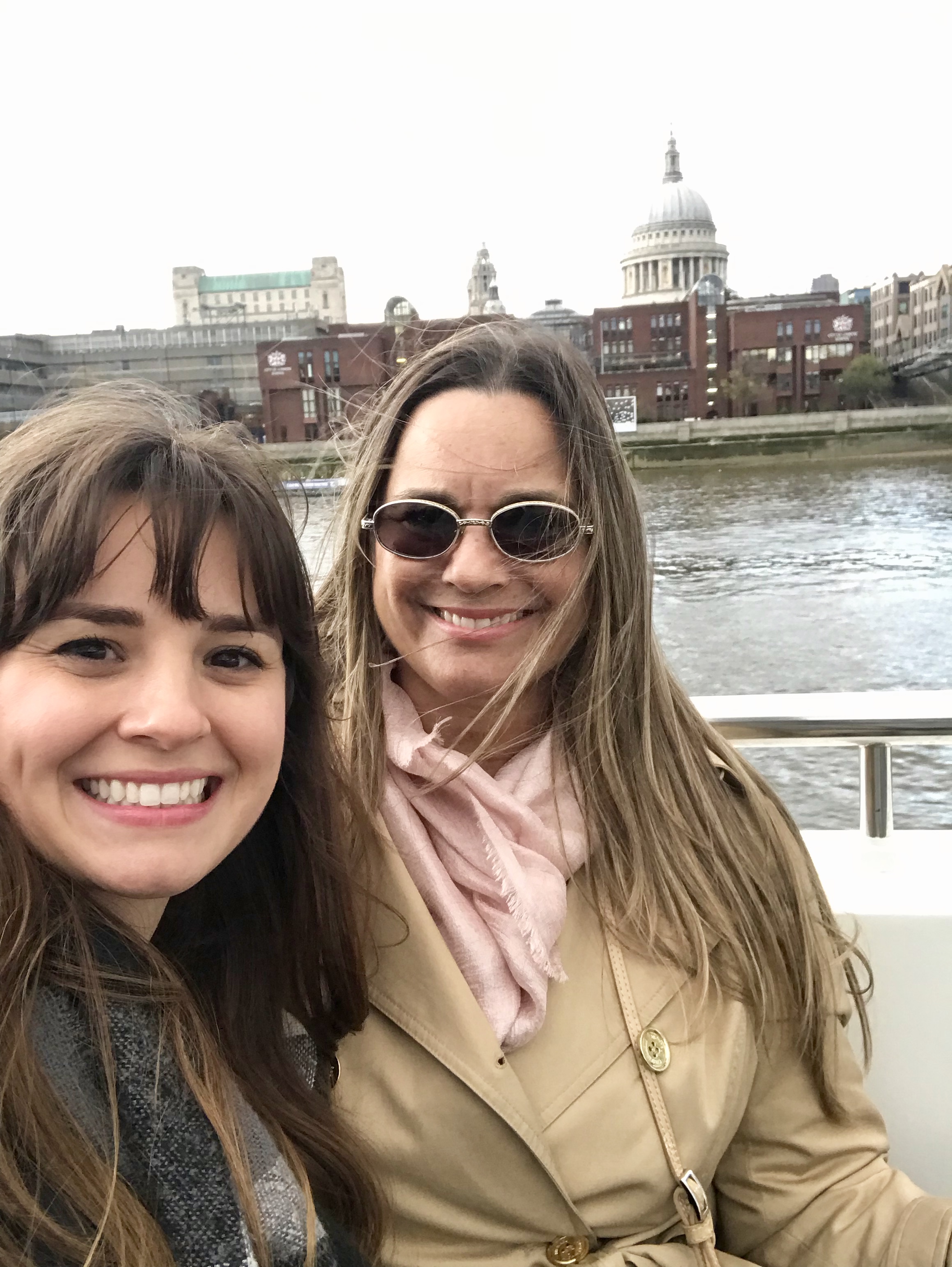 Things certainly went at a much faster pace with my mom!! Once Marcus left we grabbed some pastries and hot chocolate and boarded the London hop on hop off bus. Of course, we sat on the top level of the double decker bus and saw most of the city all in one day. We learned a lot about the city from our fantastic guide and really enjoyed soaking in all the sights. From Big Ben to Trafalgar Square, it was great to get an idea of the layout of the city. And the best part of the hop on hop off bus was that we also got to take a ferry ride down the River Thames. It was kind of a gloomy day but going under all the bridges was so cool! One bridge that was particularly cool was the Waterloo Bridge, nicknamed the “Ladies Bridge” as it was built by women during the second world war. It’s the only bridge in London built ahead of schedule, under budget, and the stones used for construction clean themselves!