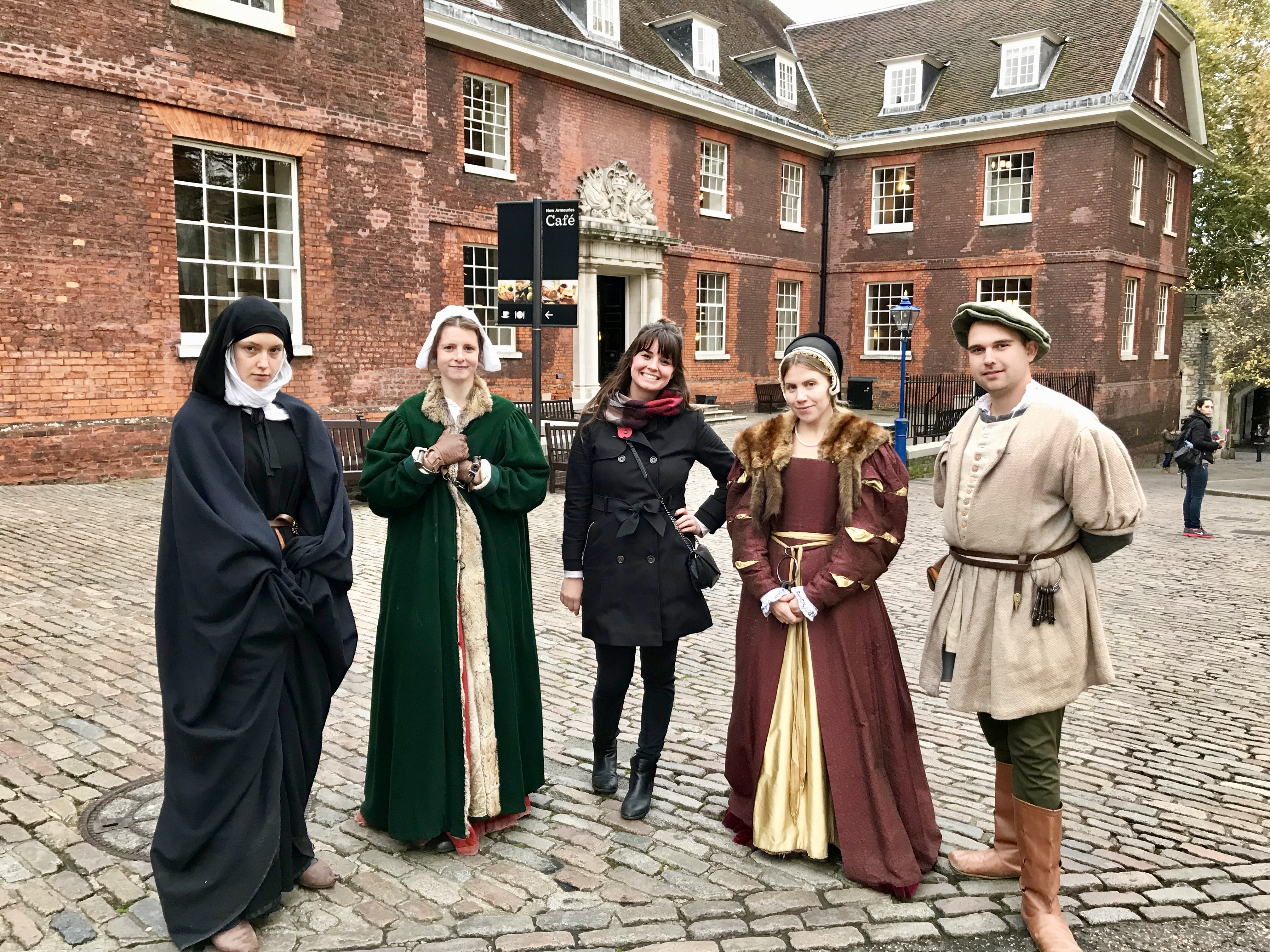 Our next stop was one of my favorite things we did in London, we visited the Tower of London! Despite its name and what I had always thought, the Tower of London is not actually a singular tower. It’s a castle and living quarters inside huge stone walls. We took a tour guided by a real beefeater, one of the tower guards dressed in the swankiest outfit as pictured below: