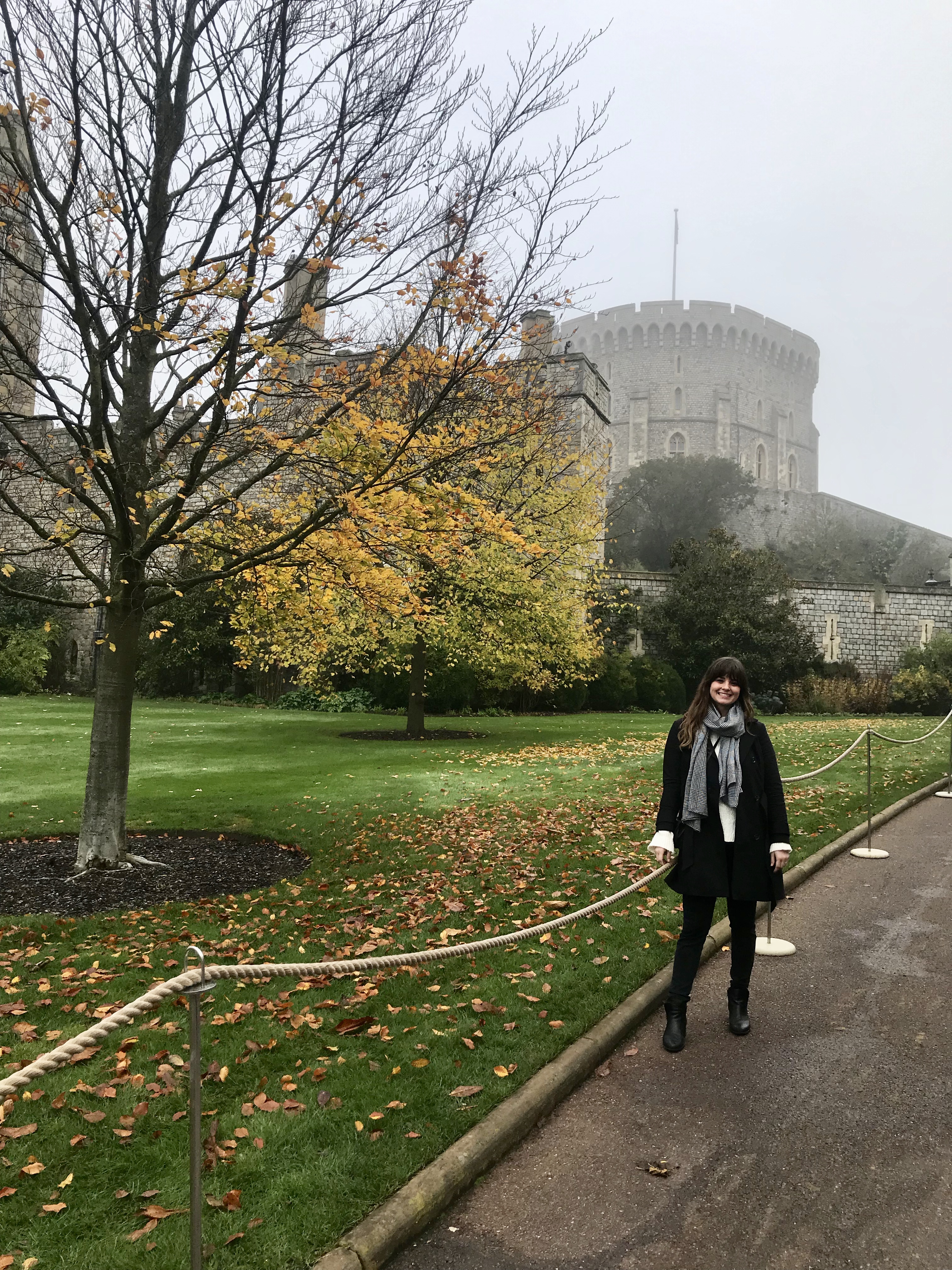 The next day my mom and I took a bus tour all across Southern England. We woke up early and caught our bus at Victoria Station. Our first stop was Windsor Castle, which was incredibly impressive. It was a very foggy morning, and though this didn’t make for great pictures it was stunning in reality. The fog did eventually die down, and we were able to see the Royal Standard flying, which meant the Queen was in residence. The lawns of the castle are stunning with all the fall colors, and the history in that castle is so extensive.