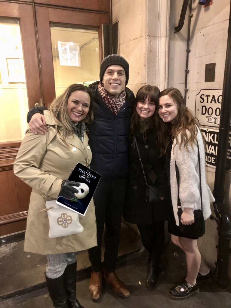 Next it was time for dinner at The Admiral, where we had amazing meat pies and, of course, sticky toffee pudding. And then on to the fulfillment of my lifelong dream of seeing The Phantom of the Opera on the West End at Her Majesty’s Theatre. I have been entranced by the story of the phantom since I was 11 years old, when I would watch the movie every single day, and devoured the original novel by Gaston Leroux. My dad took me to see the show in Vegas when I was a teenager, but nothing could compare to this experience. My amazing mom got us the best seats in the house, and the cast gave a moving performance. I got chills when the phantom descended from the rafters, and my tears were uncontrollable when he uttered the last lines of the show. It was truly one of the best experiences of my life! We were even able to wait outside the cast door and meet all the actors, including Josh Piterman who played the phantom.