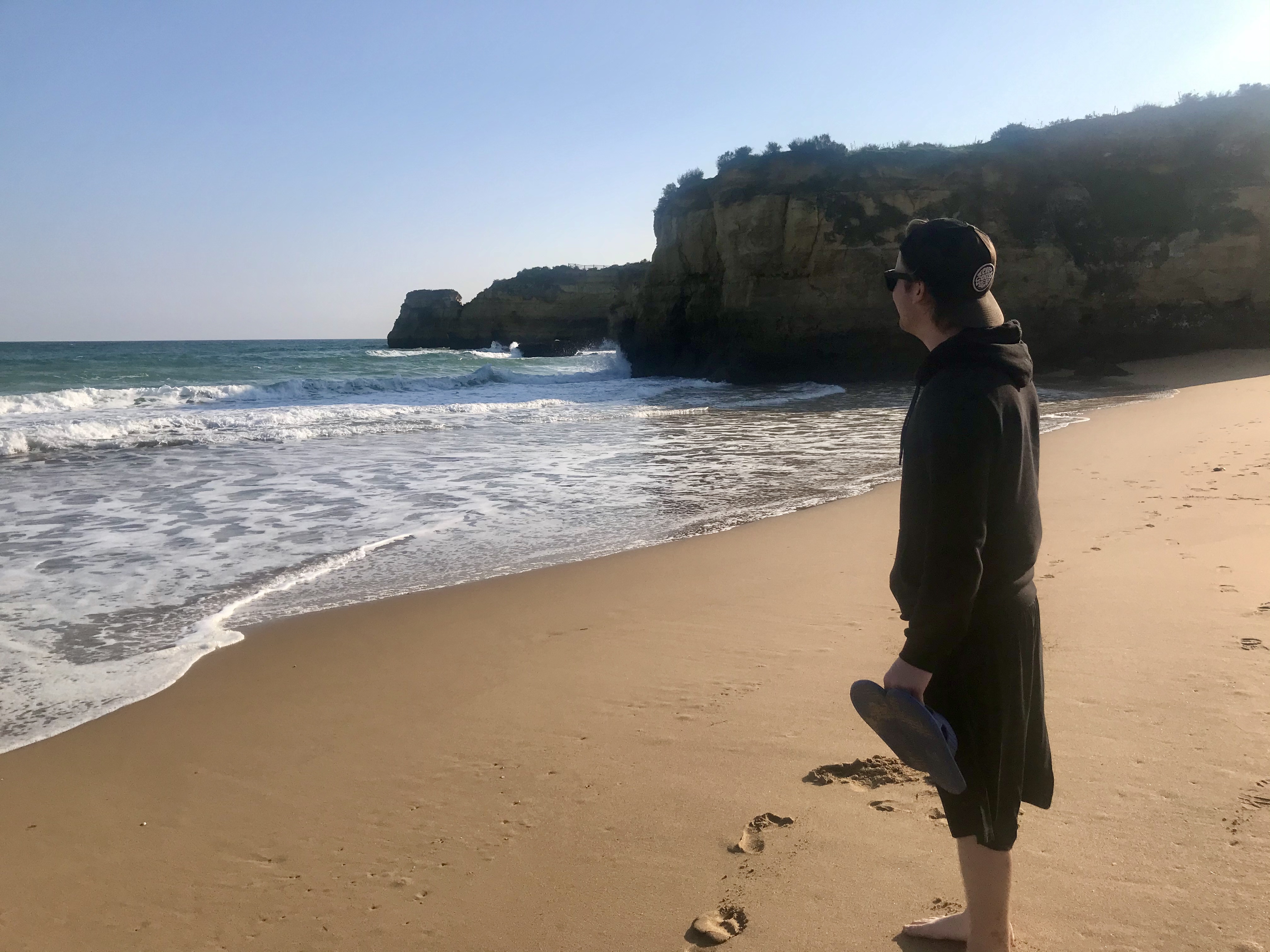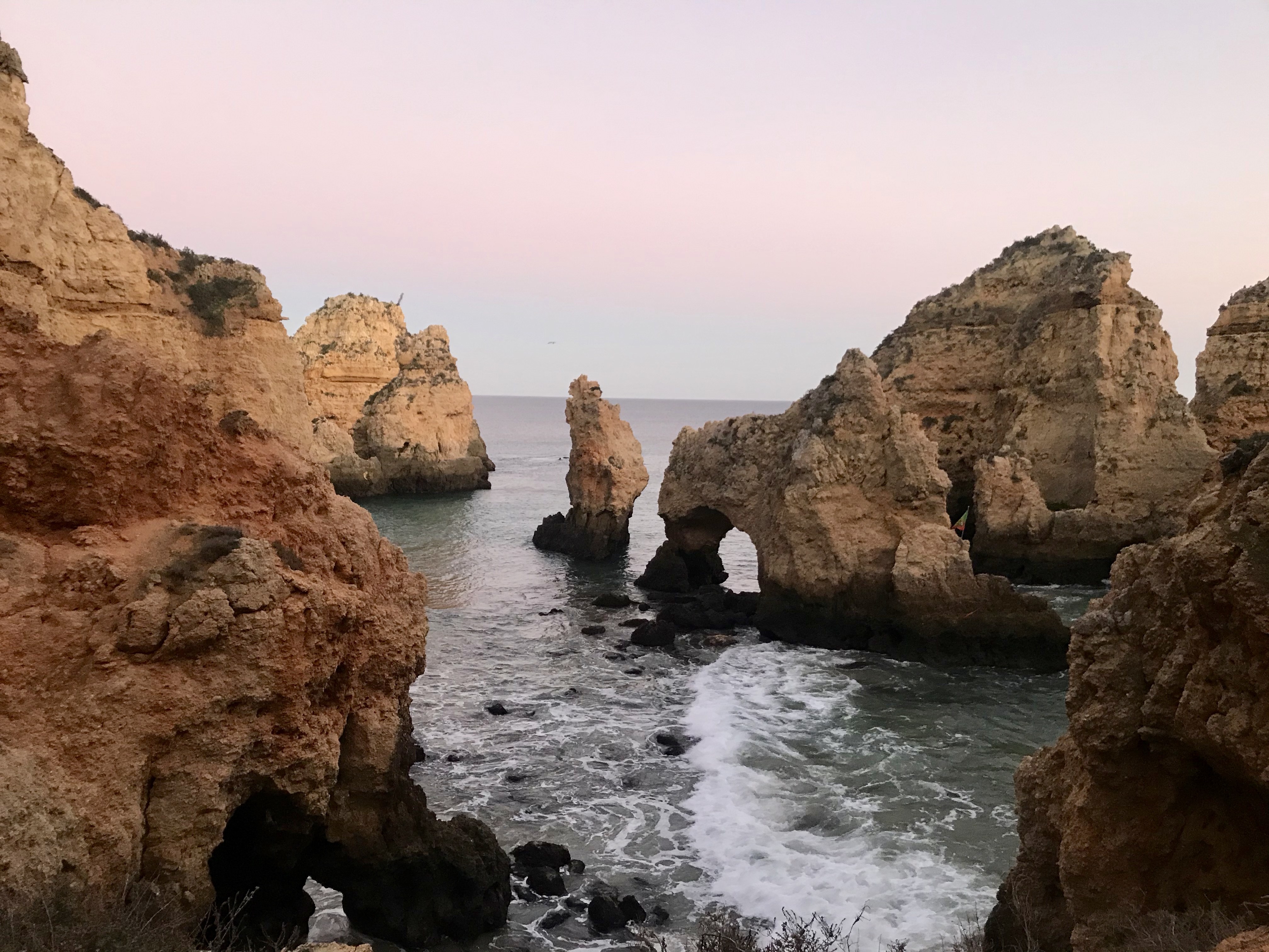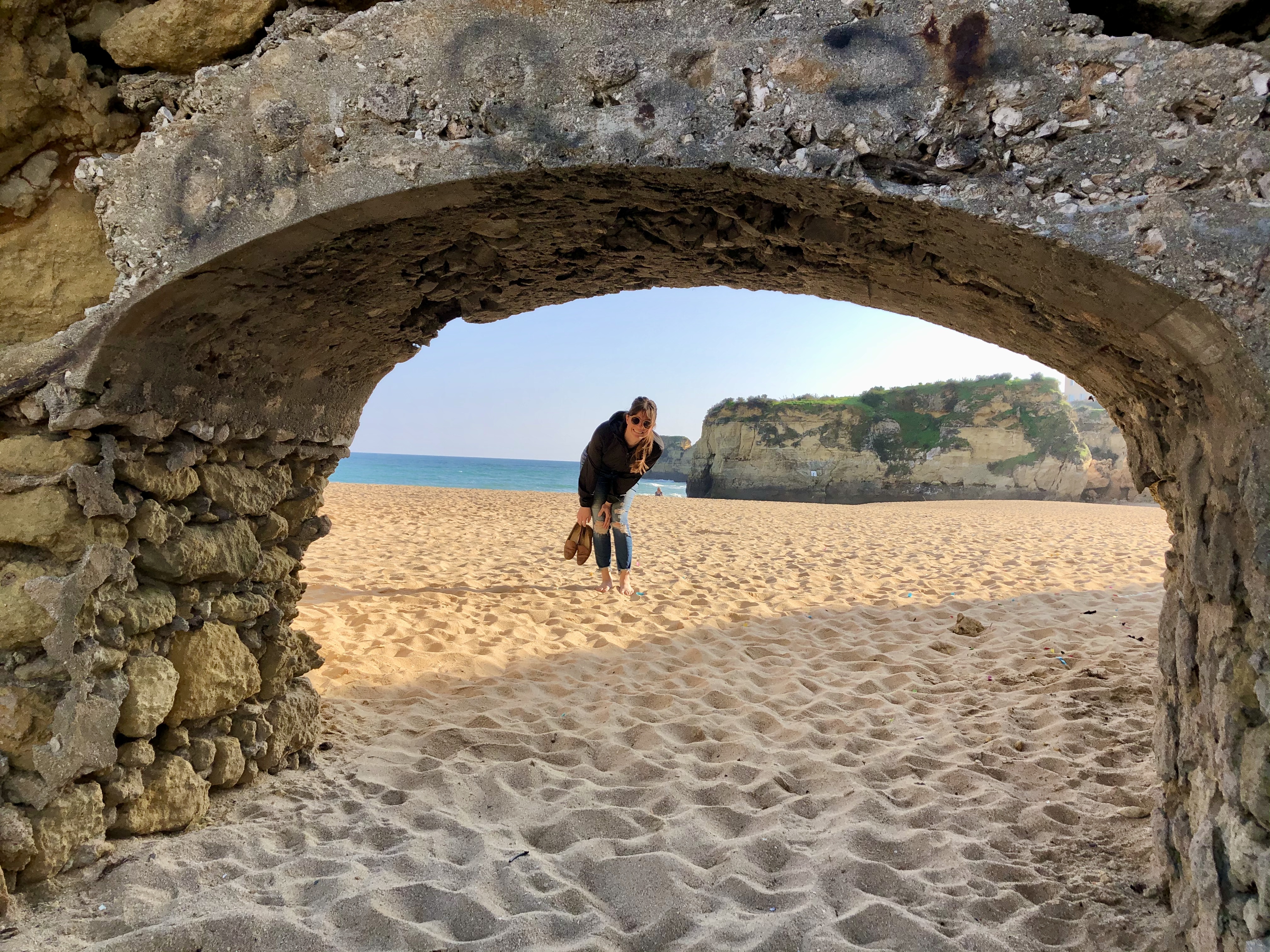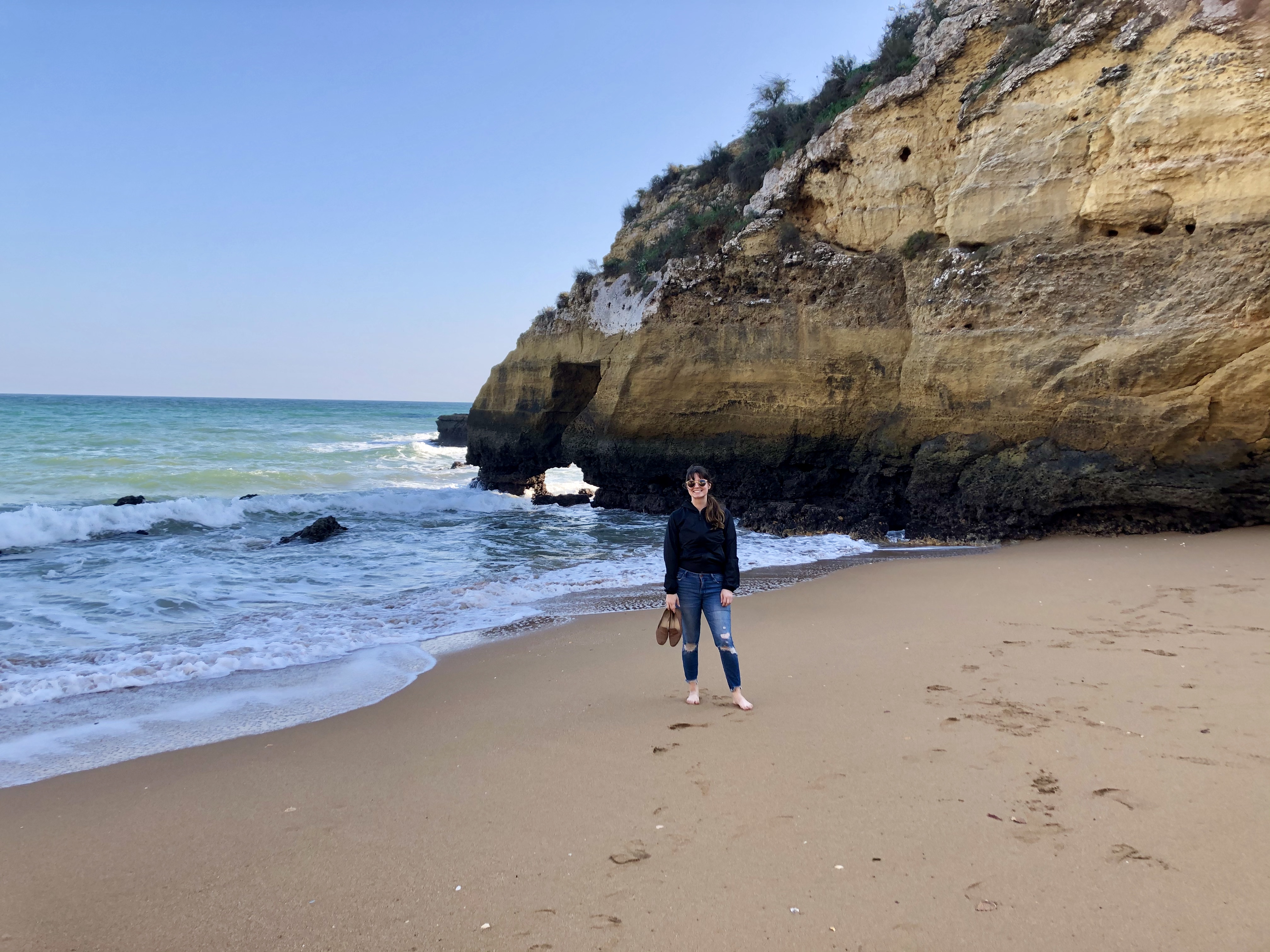 One afternoon we decided to take a break from working and walk down to the beach, and we were blown away by what was one of the most beautiful beaches we had ever seen. The Lagos beaches are surrounded by stunning cliff faces, and the cliffs naturally create small coves that felt like private beaches. We even had to go through little archways and mini caves to get through each side. Even just walking along the sand felt incredible! Despite the January weather, we dipped our toes in the water and soaked up the Portuguese sun. From this point forward, we were totally sold on Lagos and have already talked about coming back in the summer for a real Portuguese beach trip.