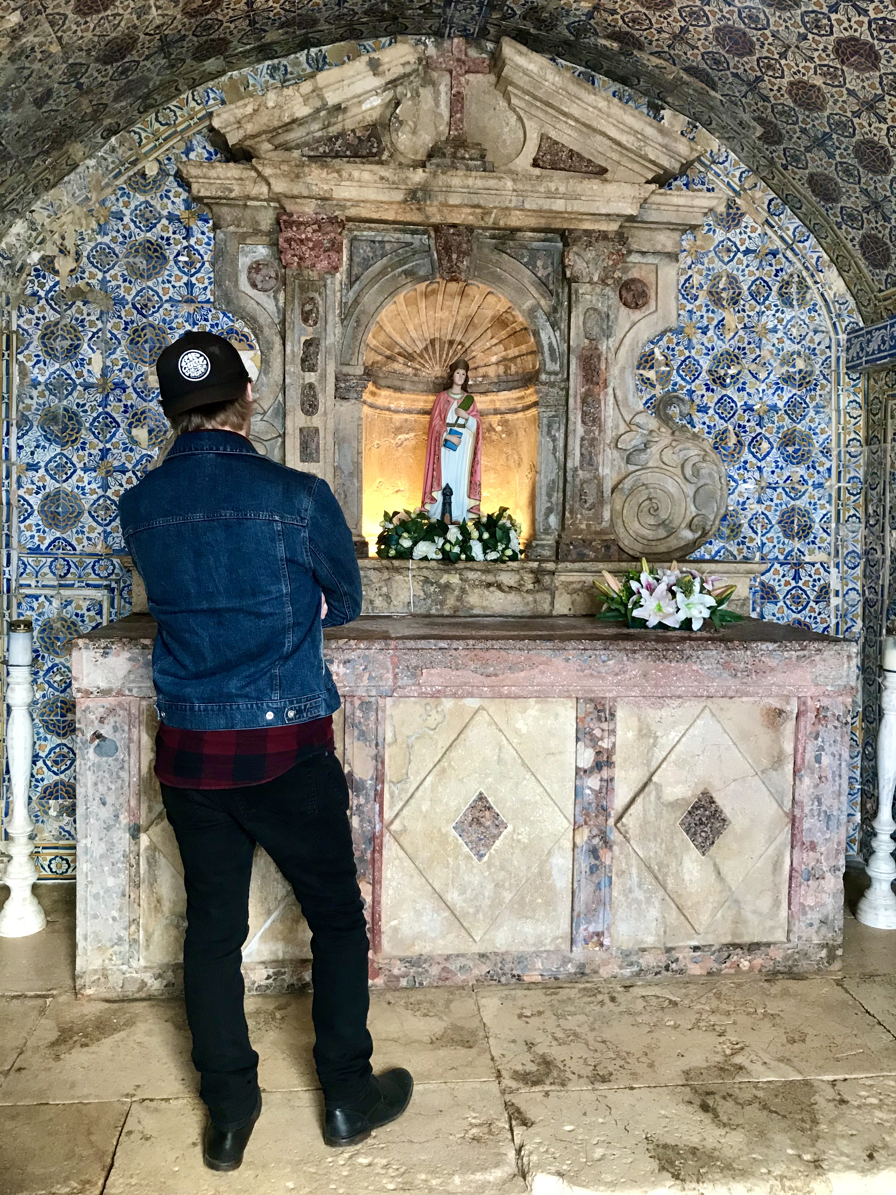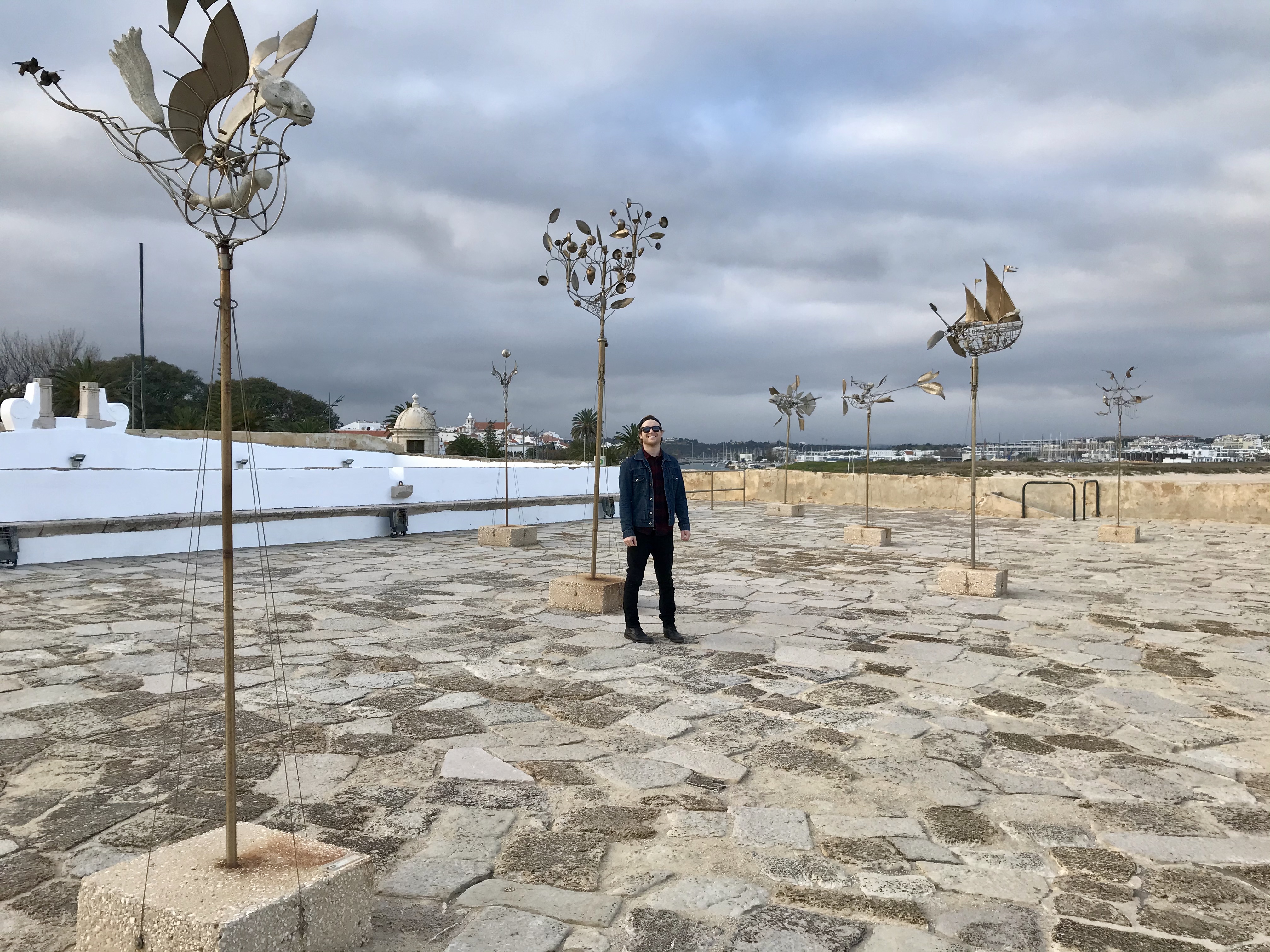 We spent the next few days exploring the quaint town of Lagos. We walked along and under the city walls, saw some beautiful tile buildings, and found the most amazing Japanese restaurant. For only 10 euros we got all you can eat of some incredible sushi, the best were the braised salmon rolls. We then visited the Forte Ponta da Bandeira, a fortress right on the waters of Lagos. Inside was a beautiful chapel, fascinating art and history of Lagos, and on the roof we had the most amazing views of the water and the coast. We had a blast finding all the hidden nooks and crannies in the fortress. There were slitted windows for shooting arrows, lookout points, and some very interesting wired sculptures that moved with the wind.